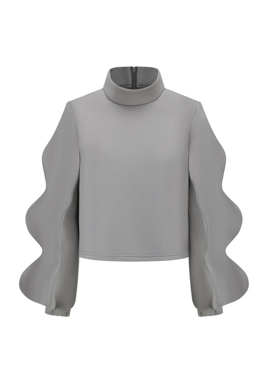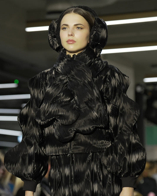 French Silk Ribbon Embroidery cropped Shirt - Black