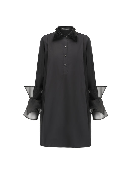 Organza Shirt Dress - Black