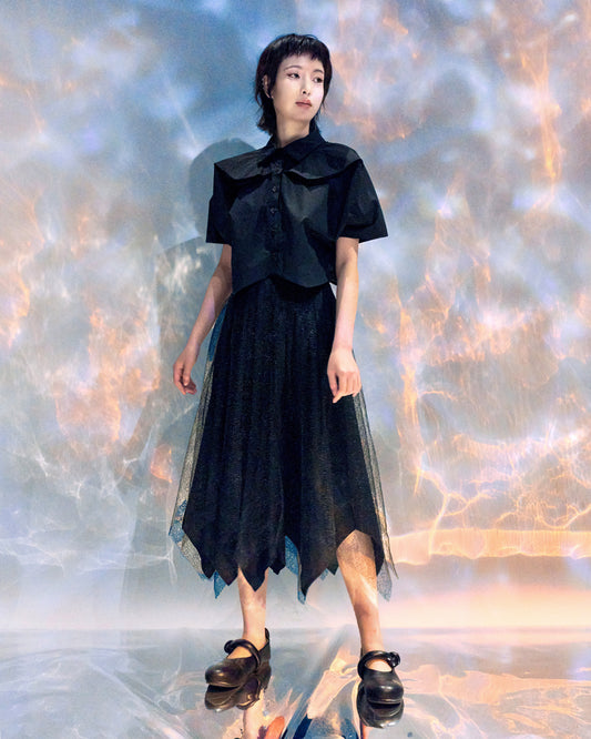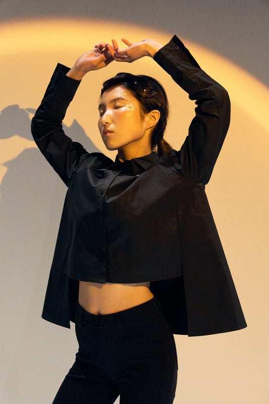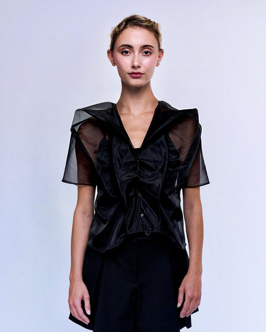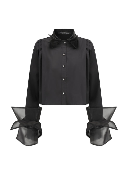 Organza Cropped Shirt - Black